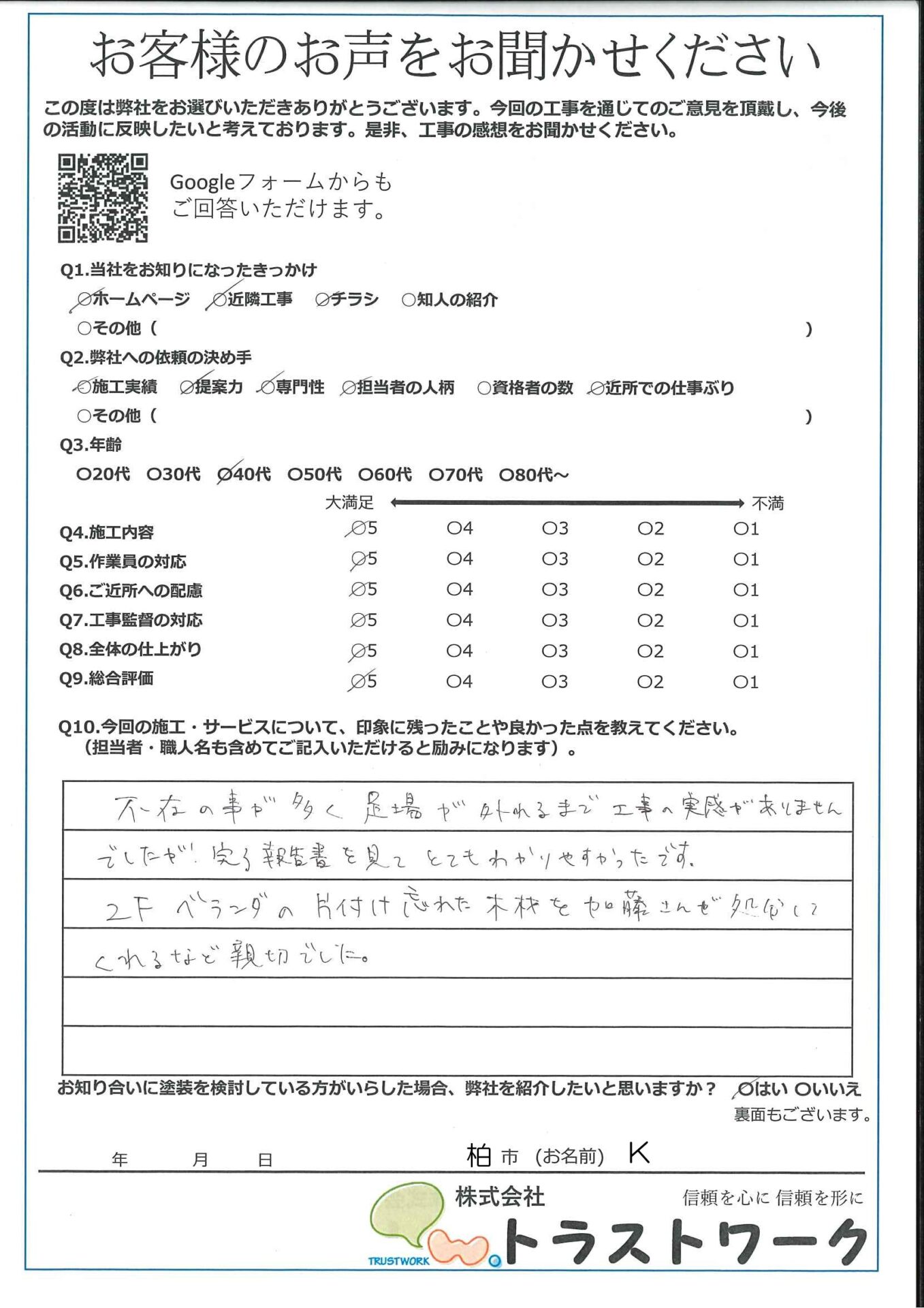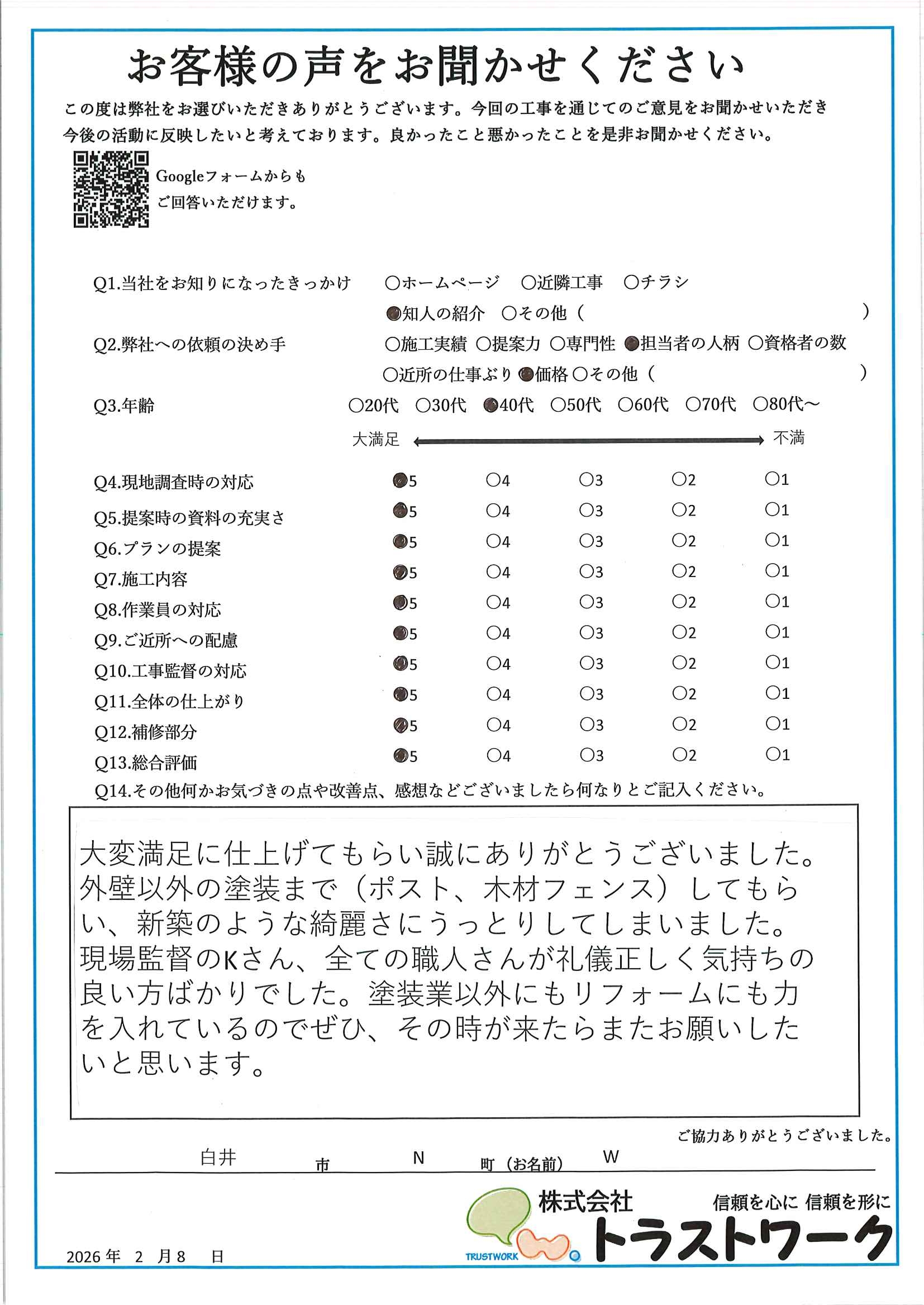 地域の皆様、いつもありがとうございます。また、数あるホームページの中からトラストワークのホームページをご覧いただき、ありがとうございます。
