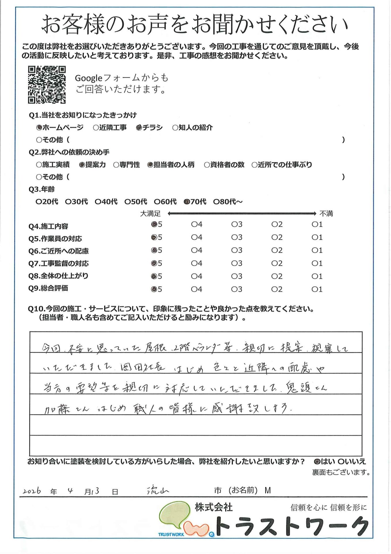 私は『信頼』という言葉が大好きです。お客様のお困りごとや不安なことをお聞きすることが信頼関係の築き上げの第一歩だと考えます。お客様の立場になり、より満足していただけるためには、何を望んでいて何をすべきか、どのような仕様・工程であるべきかを考え、ただ塗り替えるだけではなく、どれだけの付加価値を加えられるのか『提案・施工』をし、お客様にはその満足感・信頼感から次回もご用命いただき、お客様と弊社でWIN-WINな関係を築き上げられればと存じます。