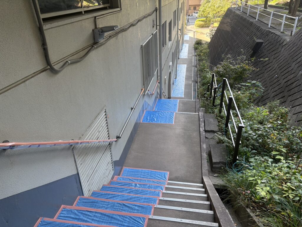 階段の手すりを塗装していることで住人の方が階段を降りるのに困っていたので、トラストワークの職人が声を掛け階段を降りるのをサポートしたというほっこりエピソードがありました😊