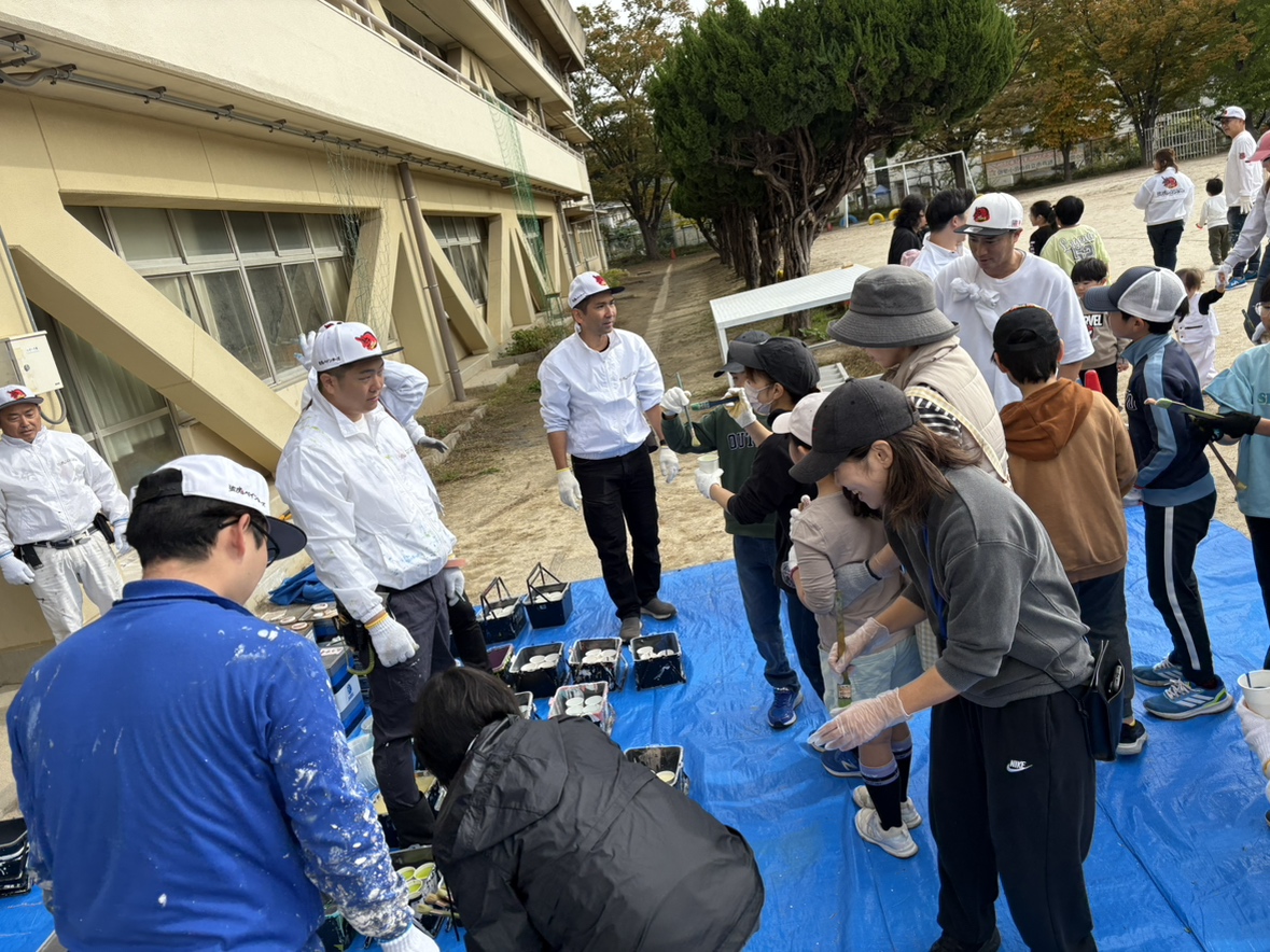保護者の皆様や子供達がご自身で塗装する事で、自分の学校に愛着を感じてほしい、物を大事にして欲しい、そして塗装工という職業を知って欲しい、そんな思いで一緒に作業させて頂きました🥰