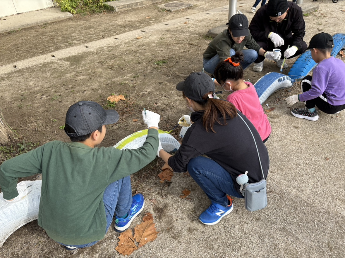 思い思いの色で、色褪せてしまった遊具もカラフルな色に変わり、校庭も明るくなりましたね😊