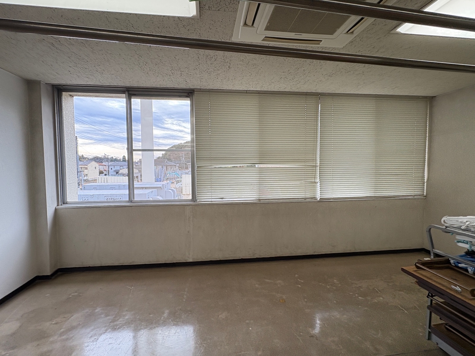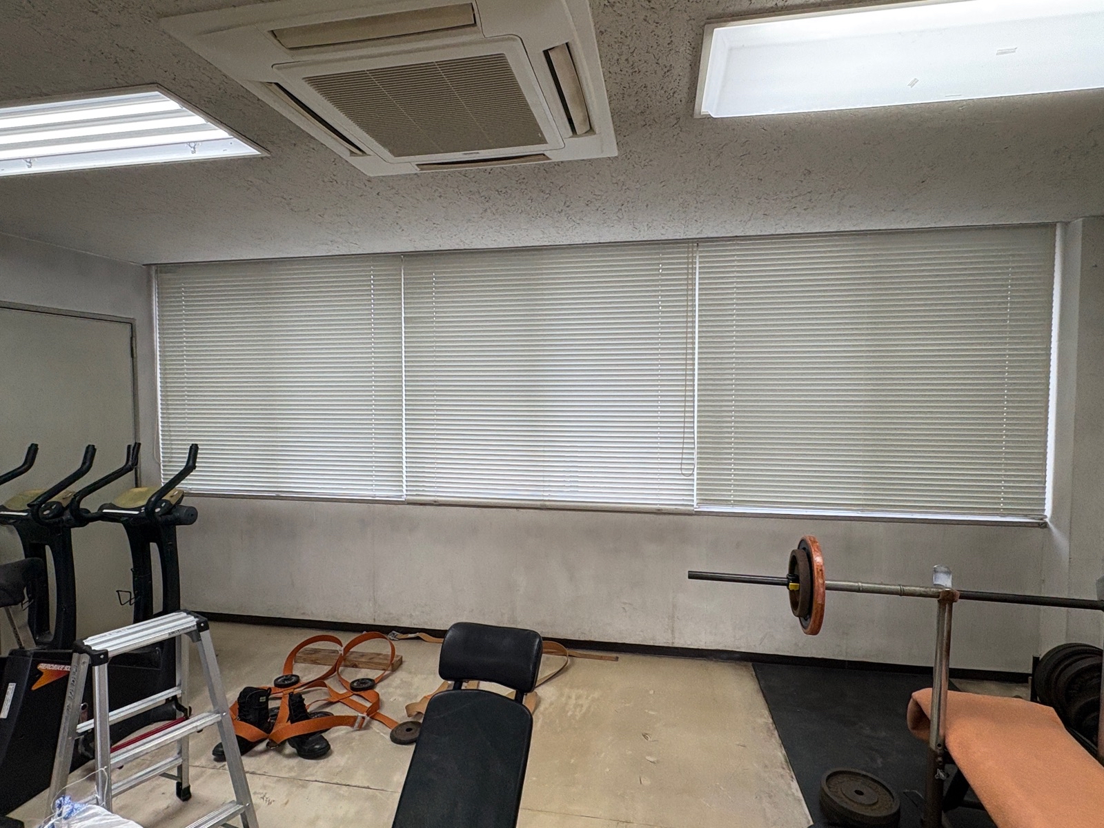 消防隊員の方々が体力作りに励まれたり、救命講習等で市民の方々が使う部屋のブラインドが壊れてしまったとの事で、交換をご希望です。交換する前の写真が下の写真です。