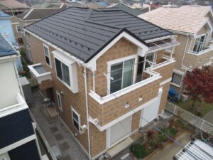 またお色は、施工前に近い色をご希望といった理由で、外壁はメインをペリウィンクルブルー、アクセント壁をグレイドルフィン、屋根はチャコールをお選びいただきました。、屋根はチャコールをお選びいただきました。メインのペリウィンクルブルーとアクセント壁のグレイドルフィンのツートンの色合いが、よりモダンな雰囲気で素敵ですね✨