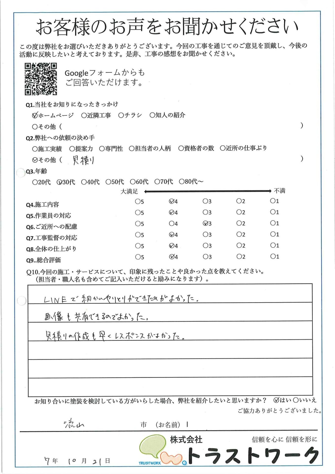流山市 I様アンケート