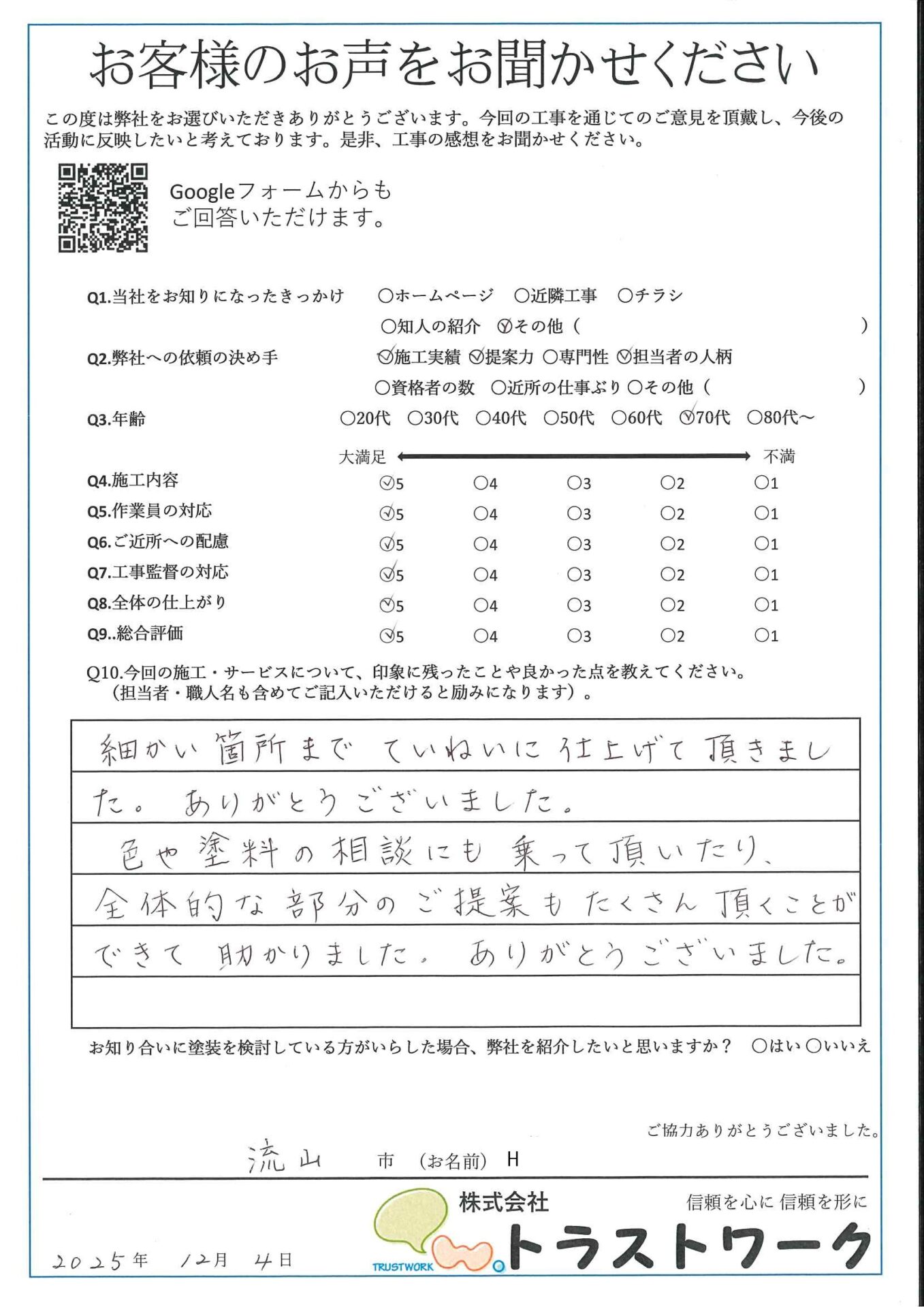 流山市 H様アンケート