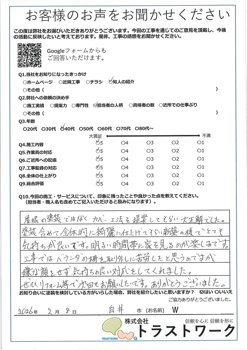 白井市 W様アンケート